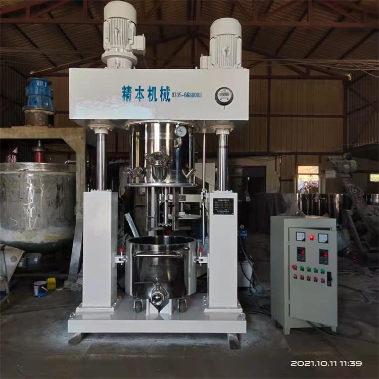 雙行星攪拌機(jī)根據(jù)行星運(yùn)動軌跡設(shè)計(jì),攪拌結(jié)構(gòu)有低速攪拌器、高速攪拌器、以及相應(yīng)的刮板裝置組合而成。雙行星攪拌機(jī)的雙組低速攪拌器自轉(zhuǎn)的同時(shí)繞著軸心進(jìn)行公轉(zhuǎn),而且低速攪拌器的形式根據(jù)不同的物料粘度和生產(chǎn)工藝選擇不同的攪拌形式,常見的攪拌形式包括槳葉式、麻花式、爪式、框式等結(jié)構(gòu),具備良好的混合、反應(yīng)、捏合、溶解的作用;高速分散器由多層具備極高線速度的鋸齒狀分散盤組成,它同樣在高速自轉(zhuǎn)的同時(shí)繞著軸心進(jìn)行公轉(zhuǎn),能夠?qū)⒎哿希ㄖ鷦┛焖俚姆稚⒌綕{料里,具備很強(qiáng)的分散作用;刮板裝置根據(jù)客戶實(shí)際的生產(chǎn)工況選配。