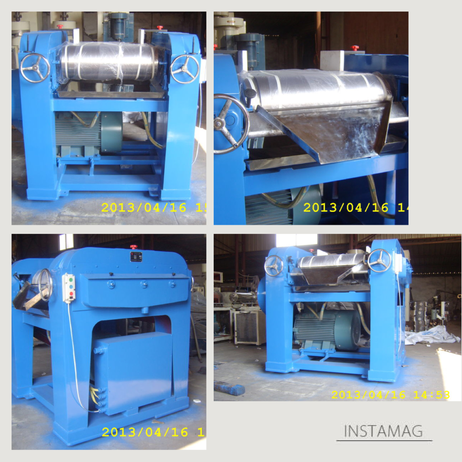 三輥研磨機(jī)適用于細(xì)度要求較高的膏體或高粘度物料使用。該機(jī)通過水平的三根輥筒的表面相互擠壓,手動式調(diào)節(jié)輥筒之間的間距,以不同速度的摩擦達(dá)到研磨效果。可裝有緊急制動按鈕,防止落入異物導(dǎo)致的設(shè)備損壞。輥?zhàn)邮褂锰厥庥操|(zhì)合金澆鑄而成;也可以使用大理石材質(zhì)。傳動采用鏈條傳動、齒輪調(diào)輥。