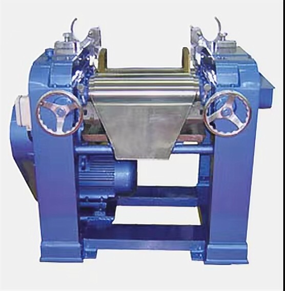 三輥研磨機(jī)適用膏體或高粘度物料使用。該機(jī)通過(guò)水平的三根輥筒的表面相互擠壓,手動(dòng)式調(diào)節(jié)輥筒之間的間距,以不同速度的摩擦達(dá)到研磨效果。可裝有緊急制動(dòng)按鈕,防止落入異物導(dǎo)致的設(shè)備損壞。輥?zhàn)邮褂锰厥庥操|(zhì)合金澆鑄而成;也可以使用大理石材質(zhì)。傳動(dòng)采用鏈條傳動(dòng)、齒輪調(diào)輥。
